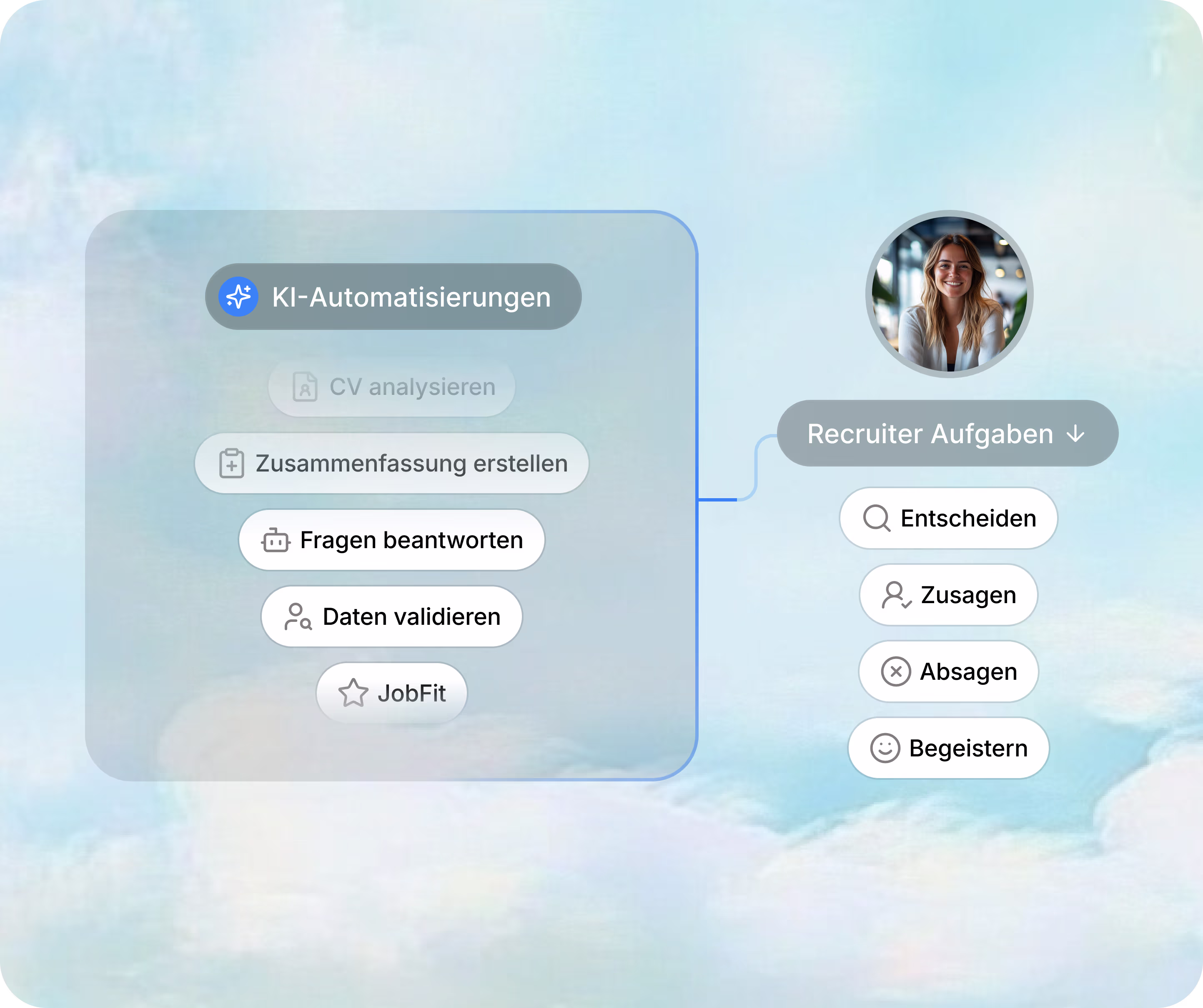 KI-Workflows automatisieren wiederkehrende Schritte im Recruiting. Qualität und Sicherheit der KI-Funktionen werden kontinuierlich geprüft. Du kannst entscheiden, welche Workflows du verwenden möchtest.