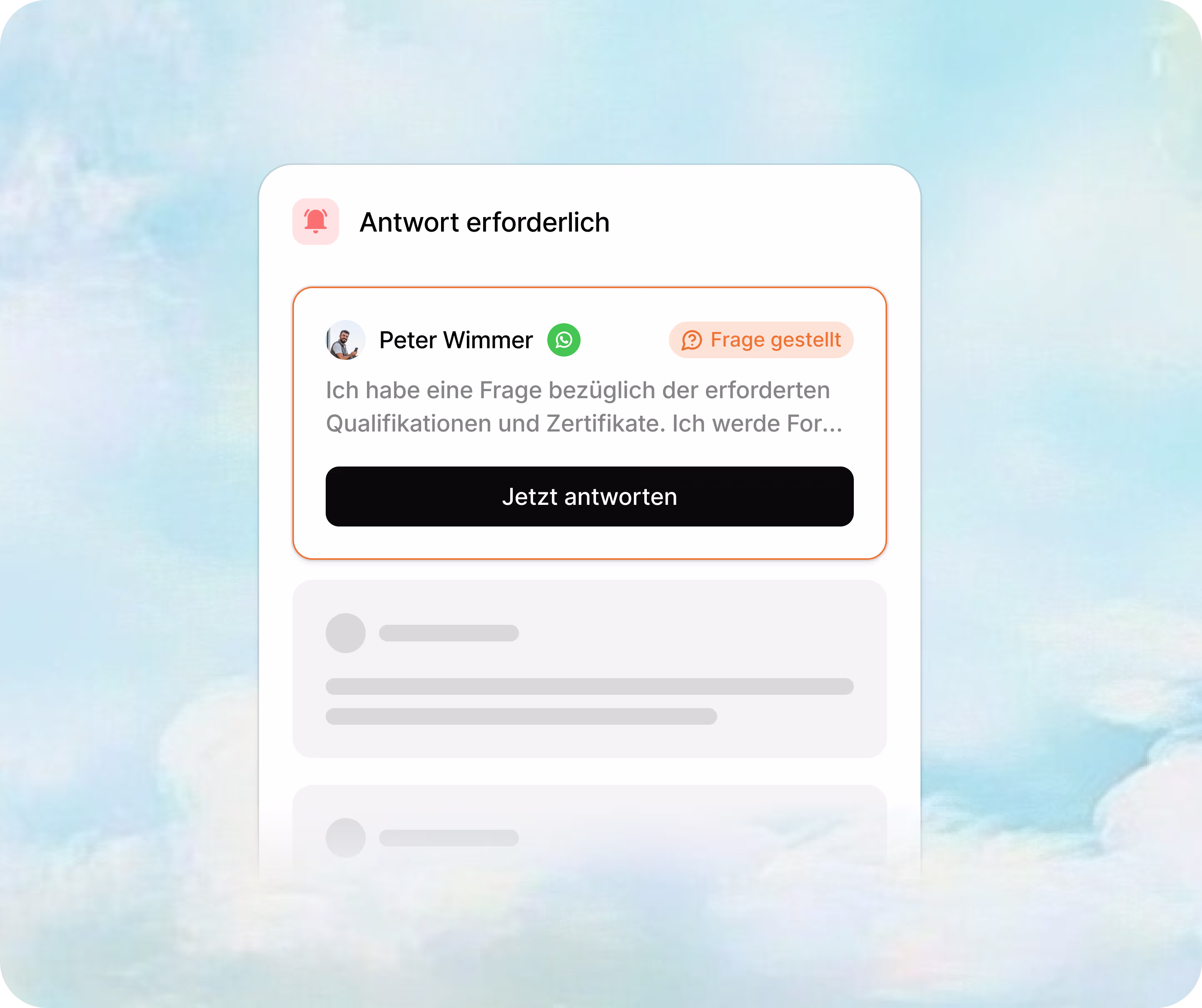 Die KI beantwortet Fragen von Bewerbenden auf Basis deiner Inhalte. Alle Antworten sind nachvollziehbar, bei Unsicherheiten wird das Recruiting-Team eingebunden.